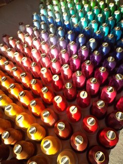 Det er en skinnende blank tråd i 100% polyester, der både kan koges, bleges og renses uden farveændring.