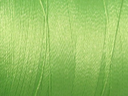 Det er en skinnende blank tråd i 100% polyester, der både kan koges, bleges og renses uden farveændring.