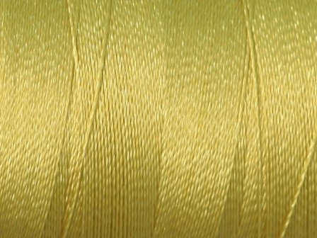 Det er en skinnende blank tråd i 100% polyester, der både kan koges, bleges og renses uden farveændring.