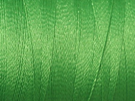 Det er en skinnende blank tråd i 100% polyester, der både kan koges, bleges og renses uden farveændring.