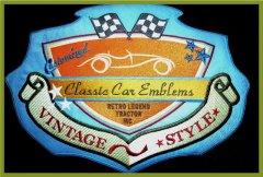 Disse Classic Car badges med bagsidelim ligger alle på lager.