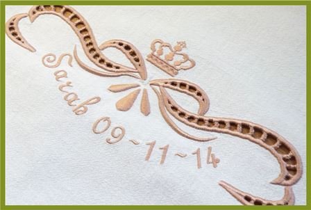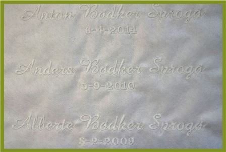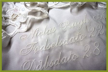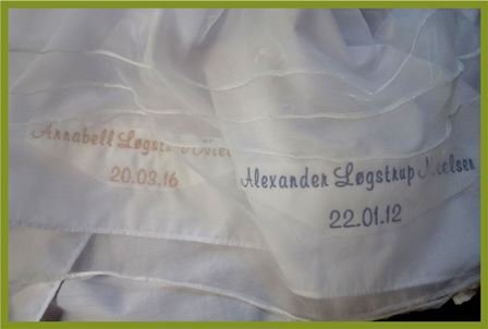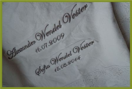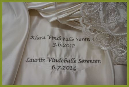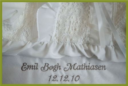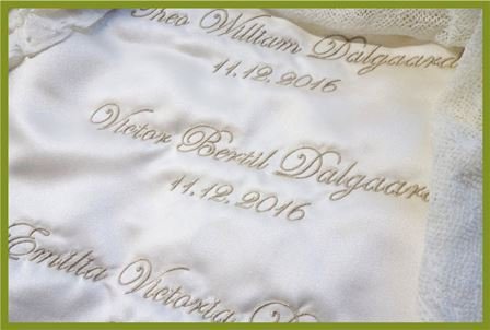 Du kan give en helt unik barselsgave med feks. en stofble eller blødt tæppe broderet med barnets navn og motiv, som vil blive gemt i generationer. Laver de smukkeste navnetræk og initialer på den fine gamle dåbskjole og flotte monogrammer på himlen til vuggen med matchende sengetøj.