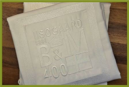 Håndklæde med stort monogram, forklæde med navn på til kokken, gave til et jubilæum, sikkerhedsveste til cykelholdet, badge på køredragten, sengetøj med monogram til brudeparret, rygsæk med reklame, tæppe med applikationer, kasket til pensionisten, broderede ophæng, julekort, vægdekorationer, stregtegning og fuldbroderi og meget mere. Det meste kan lade sig gøre og kun fantasien sætter grænser...